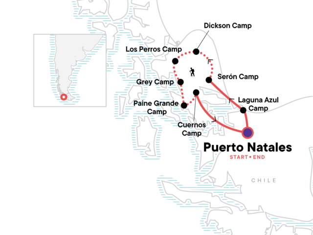 Your Welcome Moment: Welcome Moment - Meet Your CEO and Group. Camping and hiking excursion of the full circuit through Torres del Paine National Park with porters (9 days). All transport between destinations and to/from included activities.